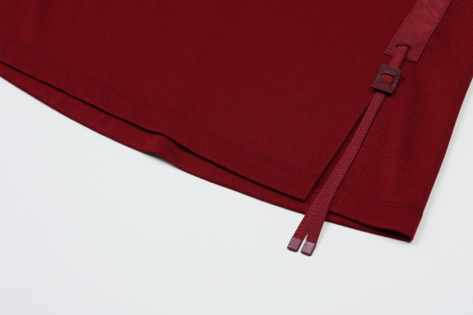 앞 옆면부에 있는 드로우스트링으로 밑단의 트임 정도를 조절할 수 있는 디테일 탑 입니다.