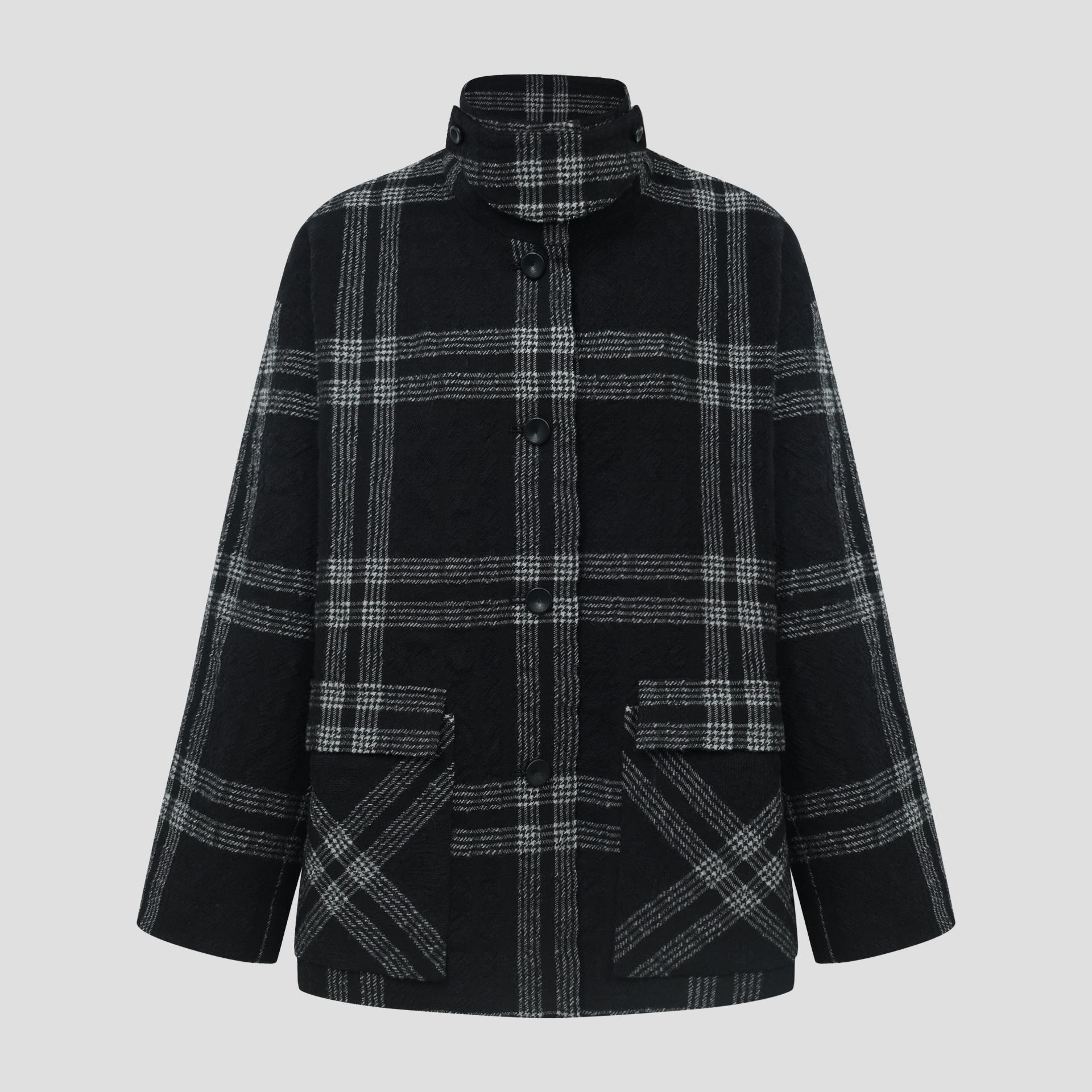 하이넥 체크 자켓 (A253J10CBK)