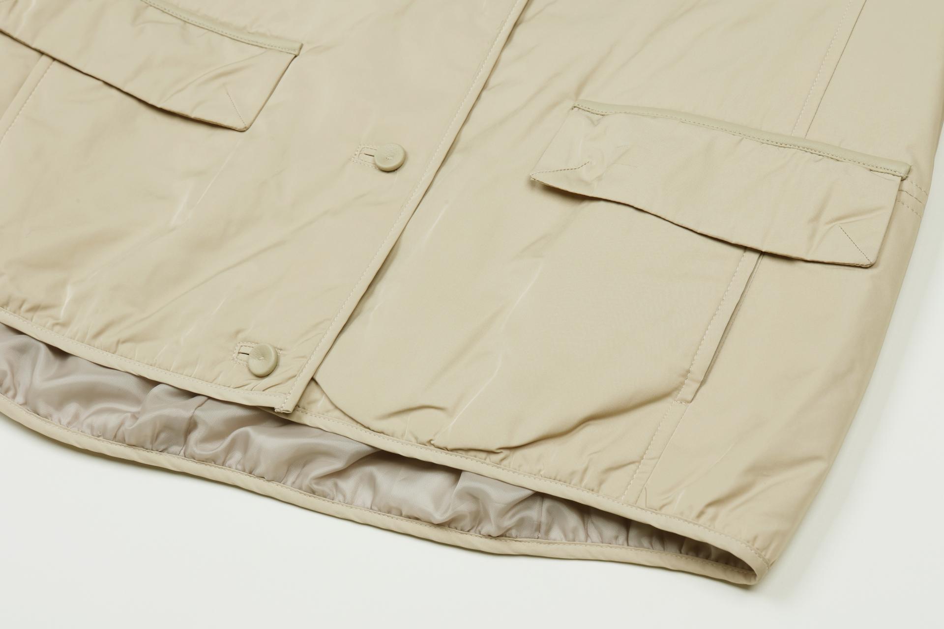 은은한 광택감이 있는 선염 메모리 소재의 패딩 자켓입니다.