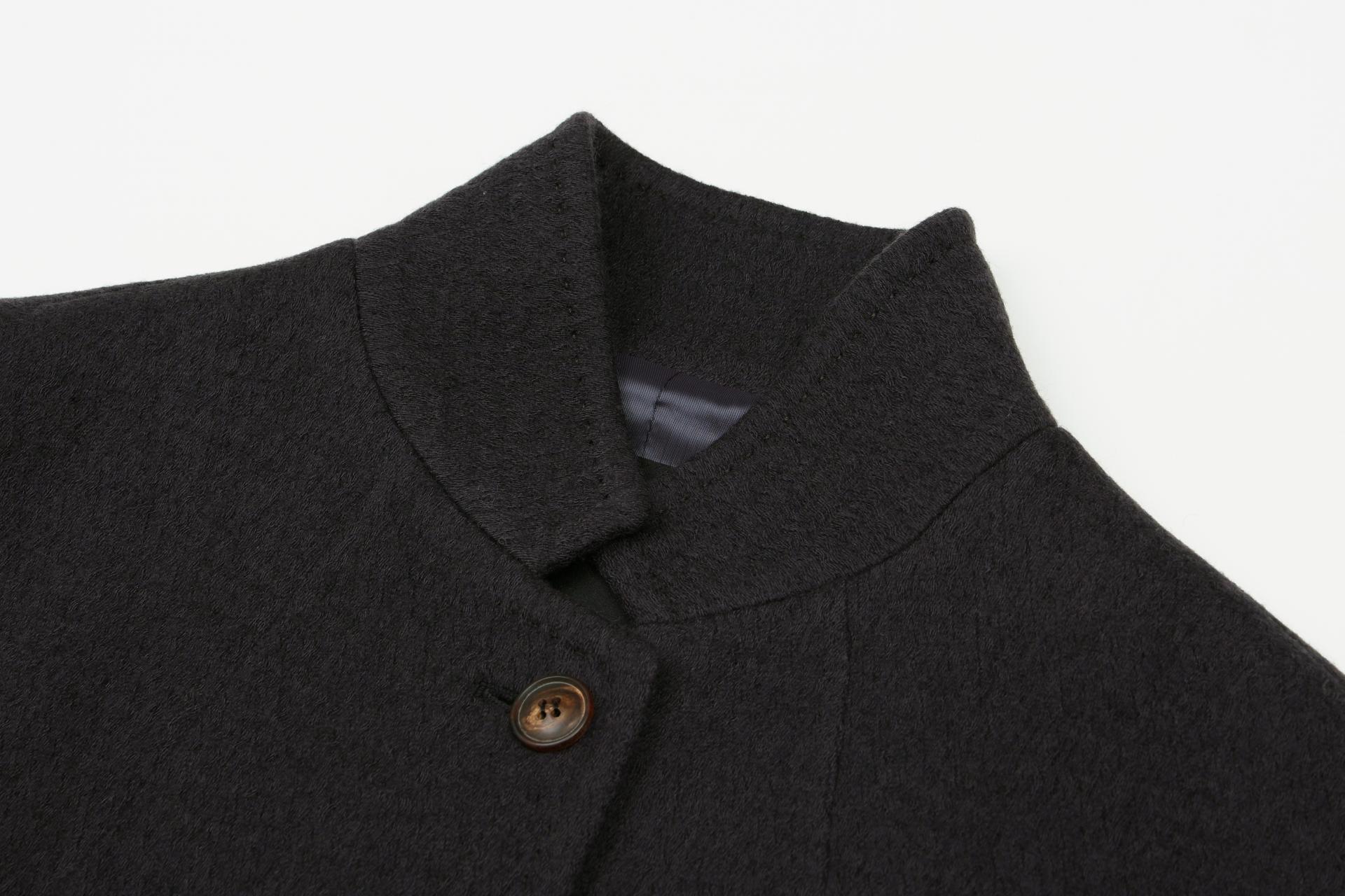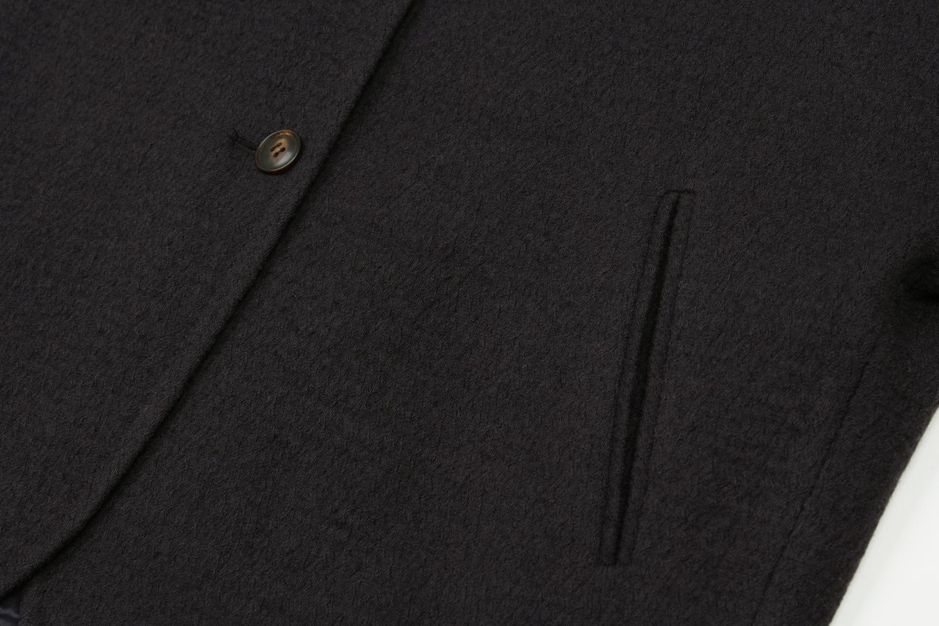 이태리 릴리아사의 수입 소재로 울소재로 독특한 짜임의 외관 소재로 포근한 터치감의 군더더기 없이 간결한 디자인의 자켓입니다.
