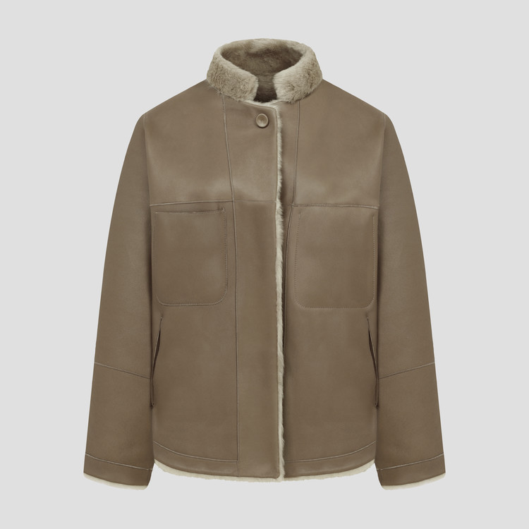 여유 있는 재킷 스타일의 무스탕 자켓입니다.