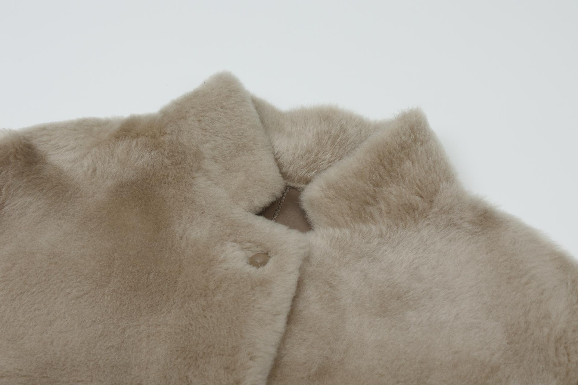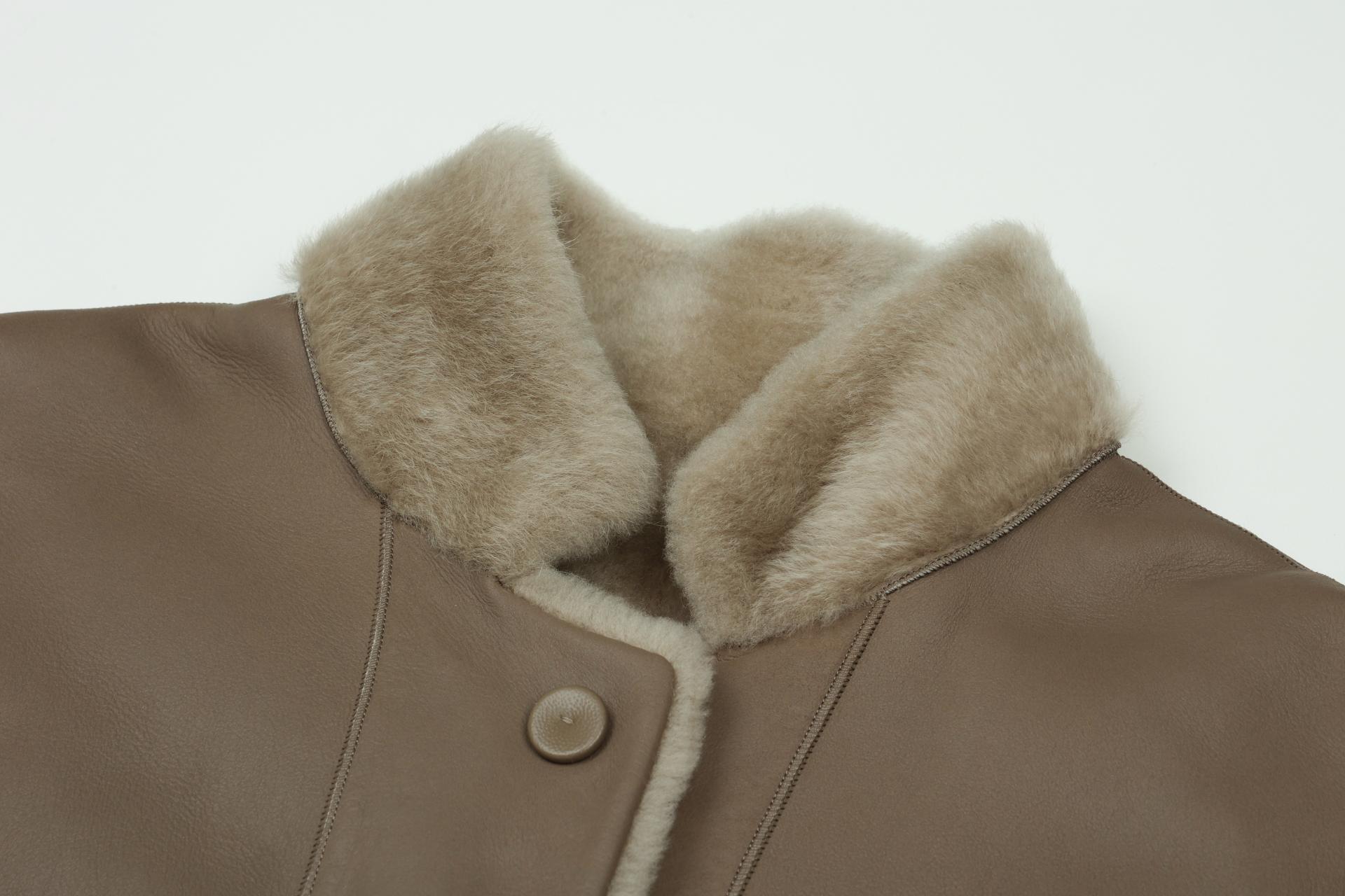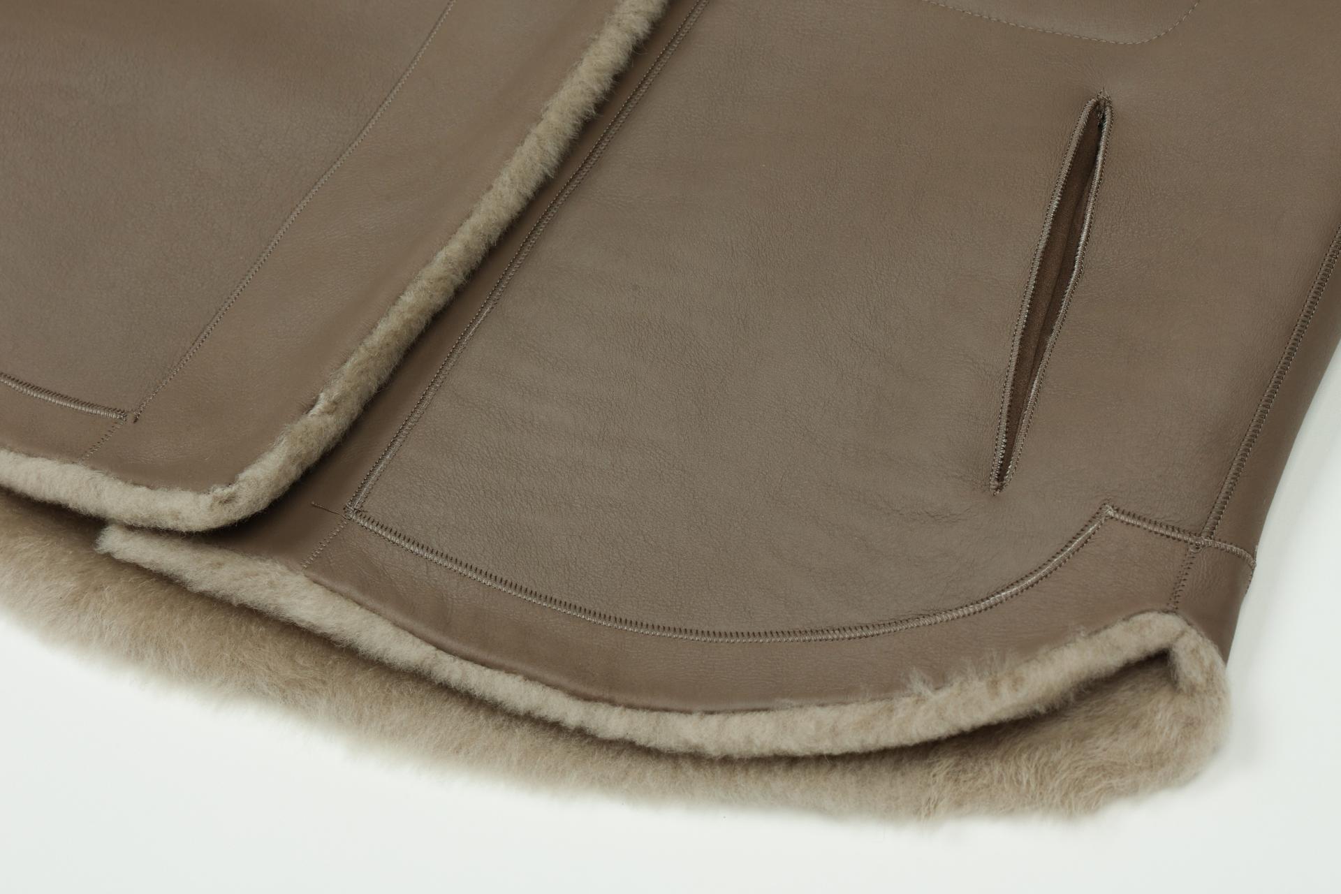 가볍고 부드러운 특징을 가지고 있는 원피인 라콘을 사용한 무스탕 재킷입니다.
