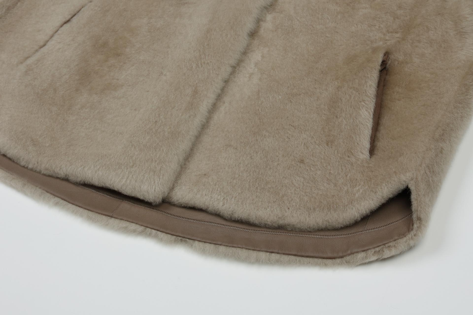 ※가죽면이 부드럽고 털이 여리여리한 특징을 가지고 있으며 마찰에 따라 털이 뭉칠 수 있습니다. 모피용 빗으로 빗어주시면 다시 풀어집니다.