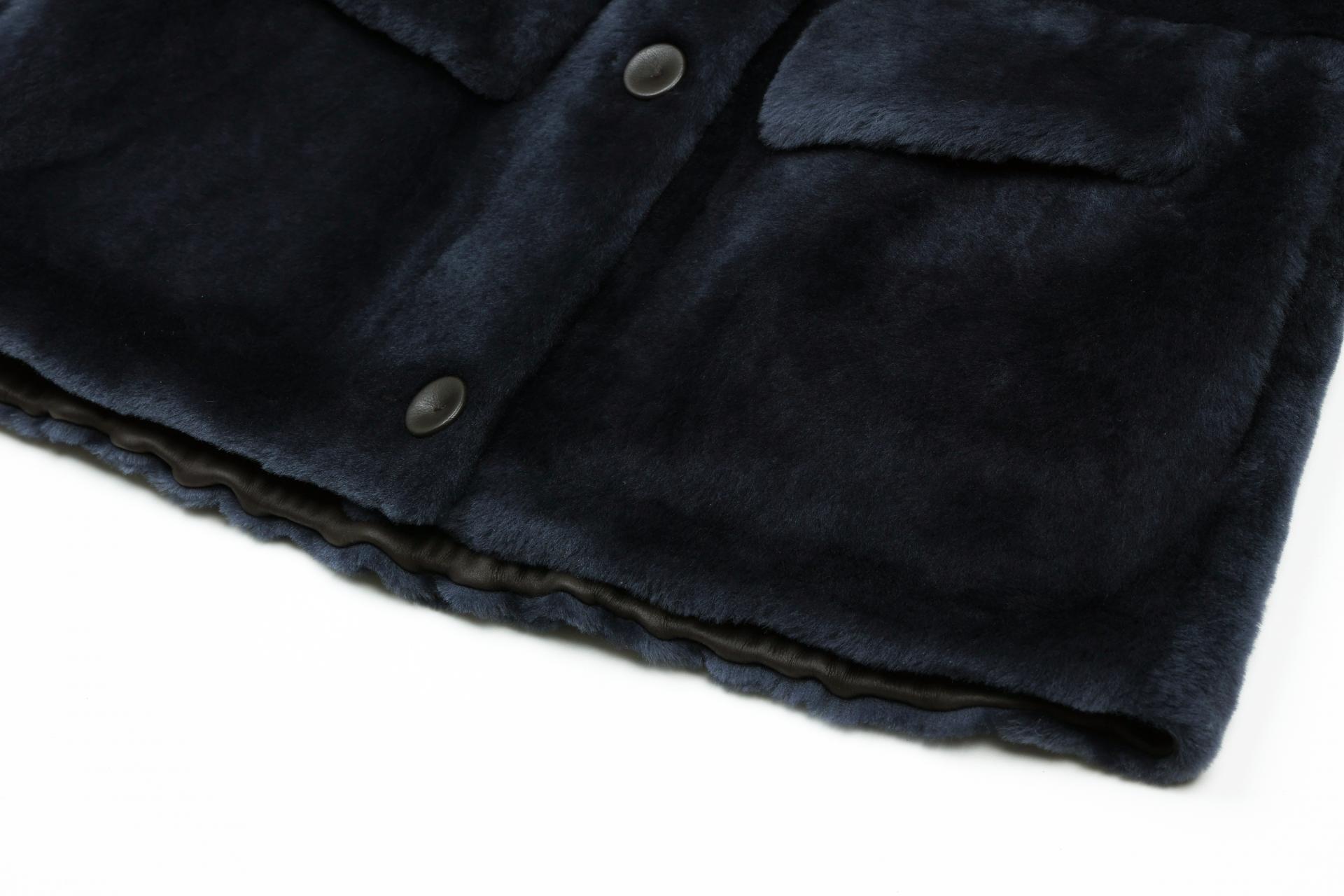 짧은 기장감의 무스탕 소재를 사용한 부드럽고 포근한 터치감의 무스탕 자켓입니다.
