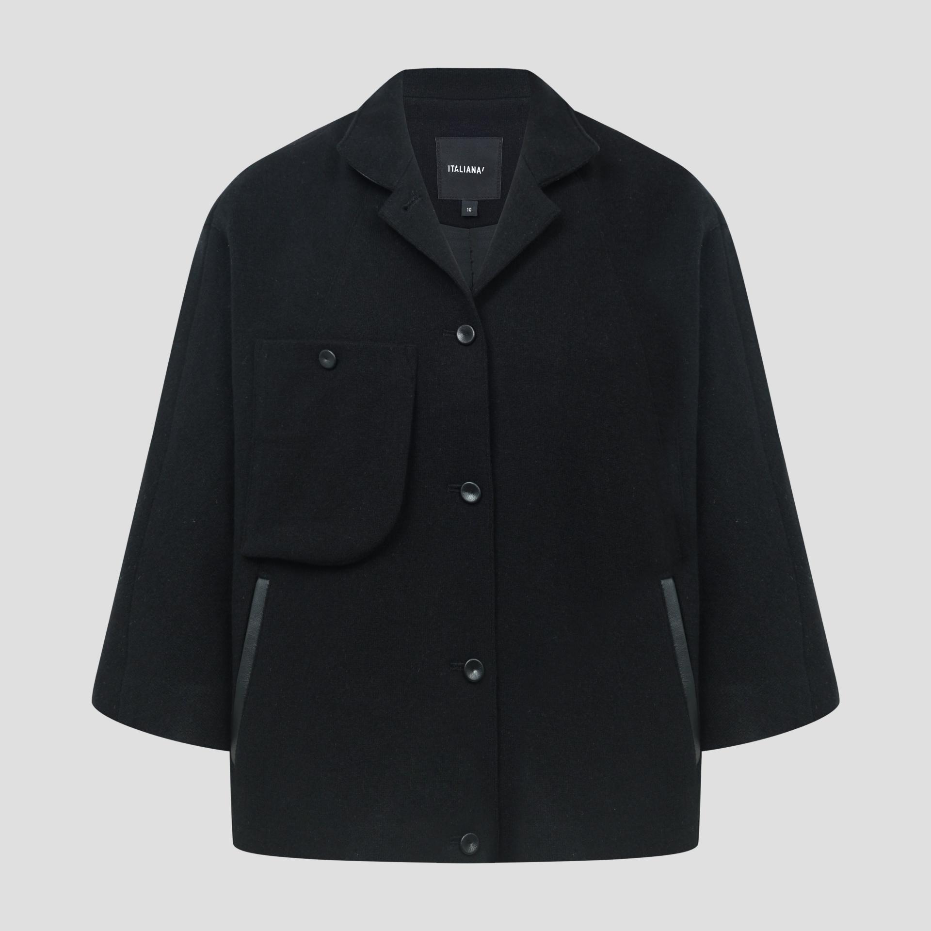 레더 텍스처 블록 울 자켓 (A253J12SBK)