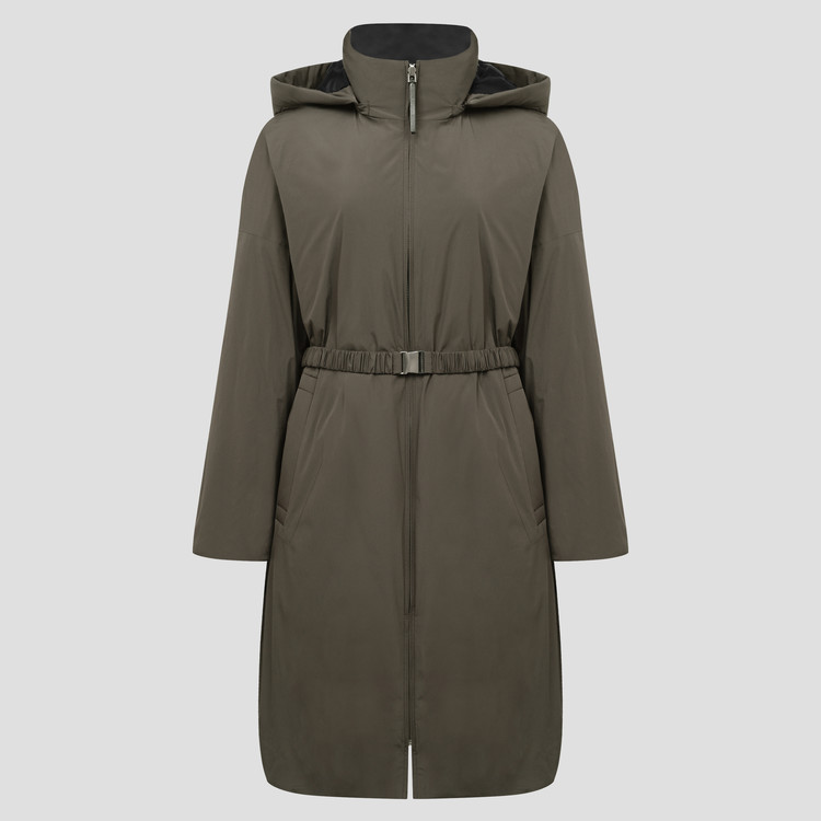 후드와 허리 스트링으로 자유롭게 실루엣 조절 가능하며 후드 카라는 지퍼로 탈부착 가능합니다.
