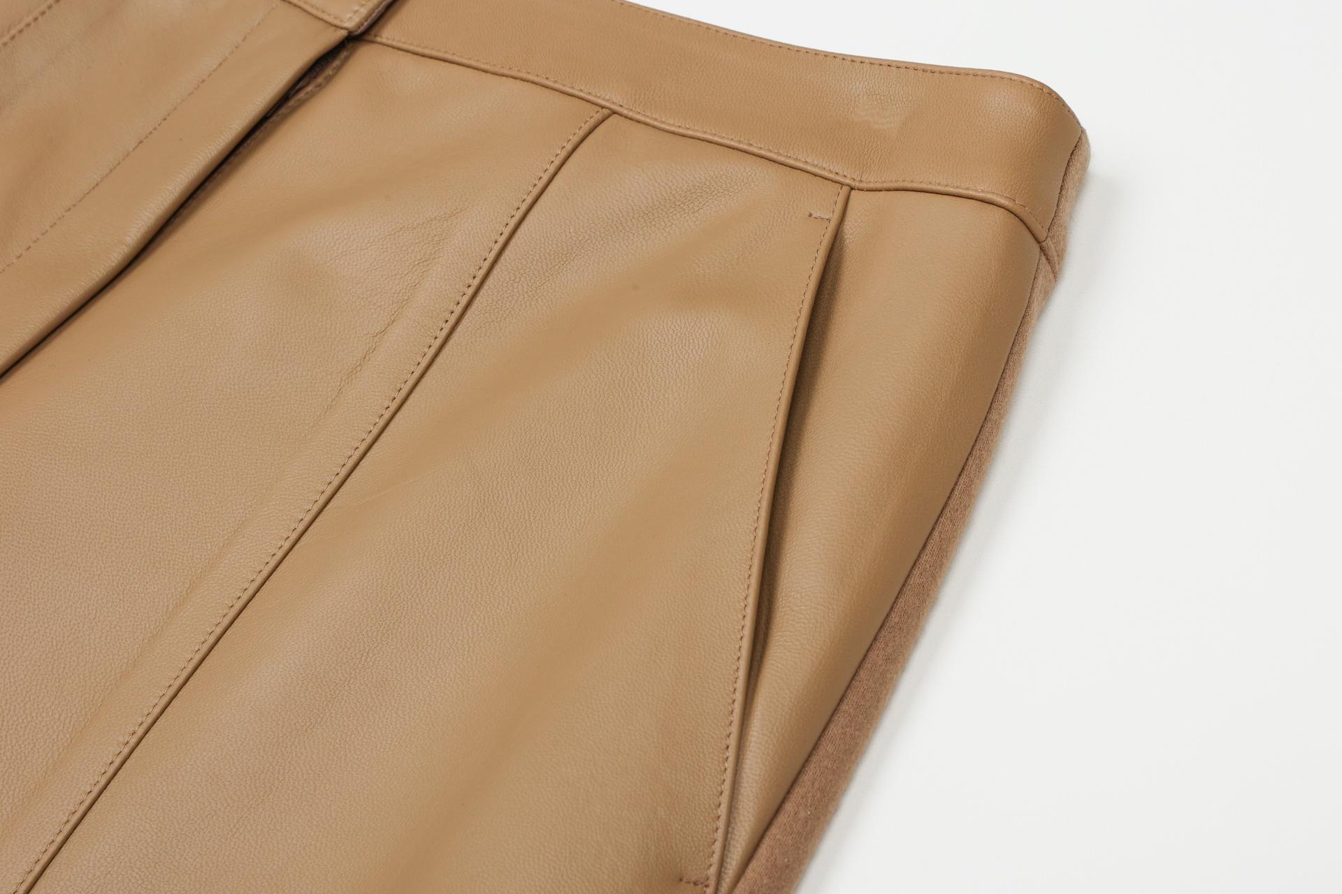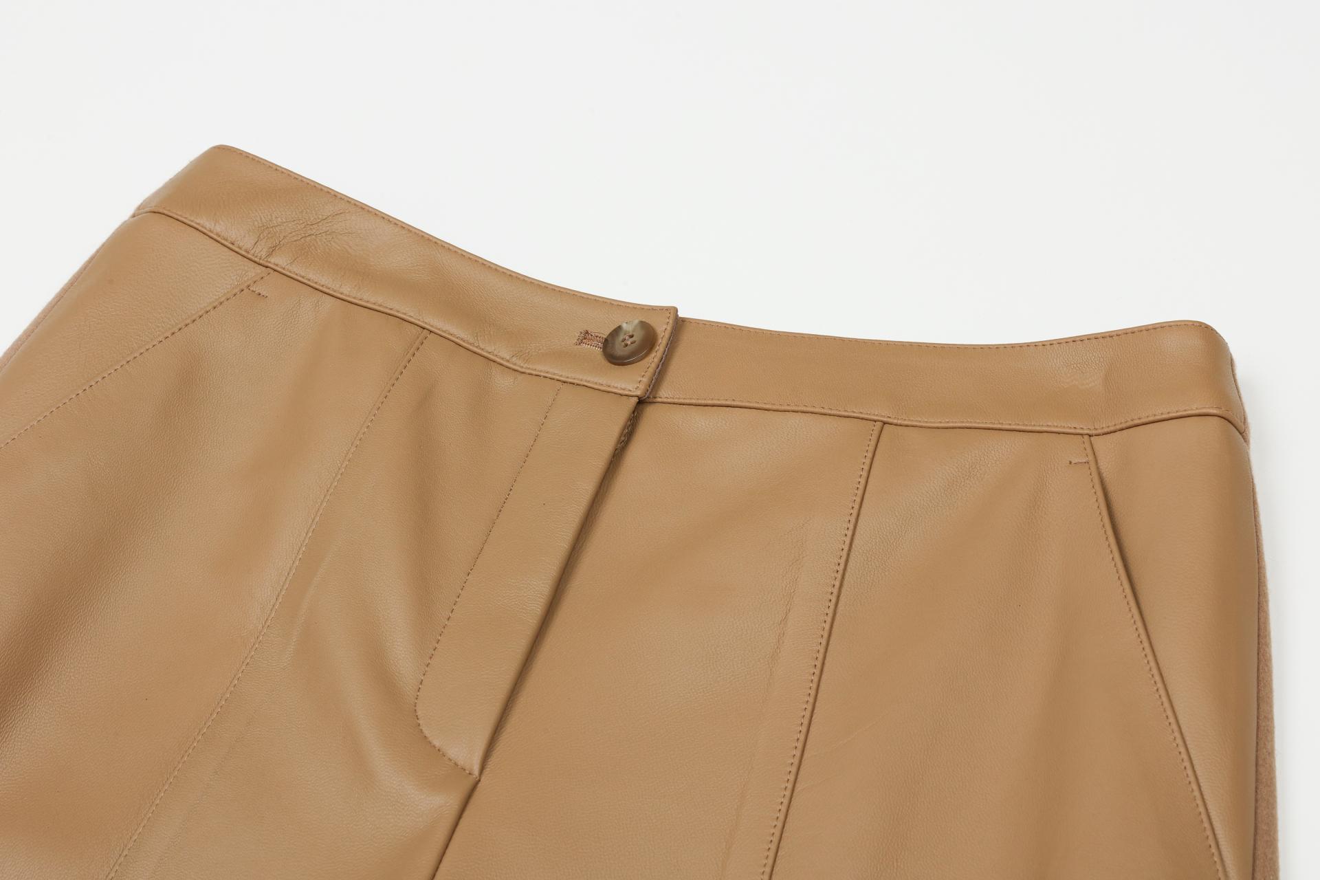 앞판은 양가죽, 뒷판은 울져지 소재로 구성된 팬츠이며, F/W 트렌디한 무드를 연출할 수 있습니다.