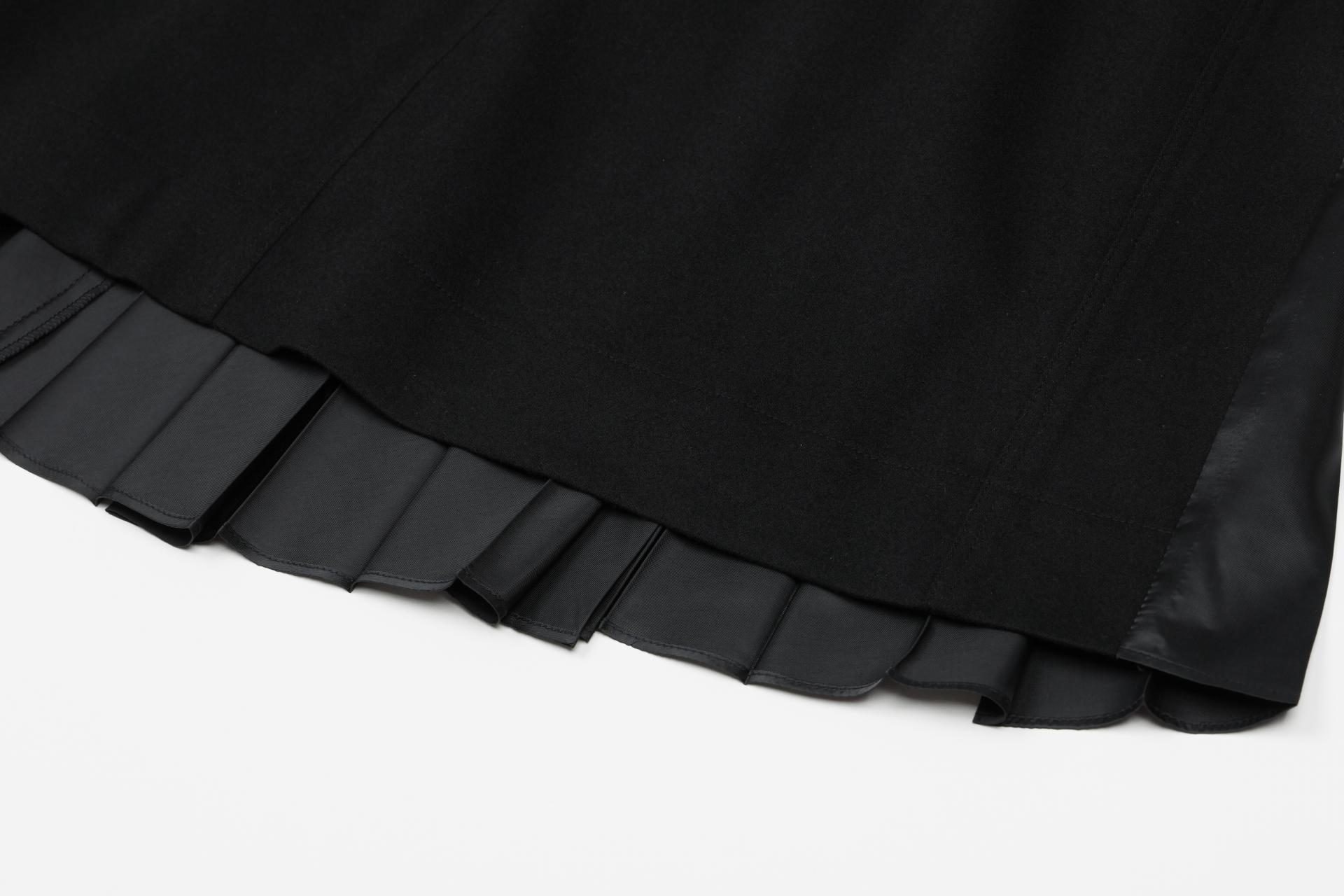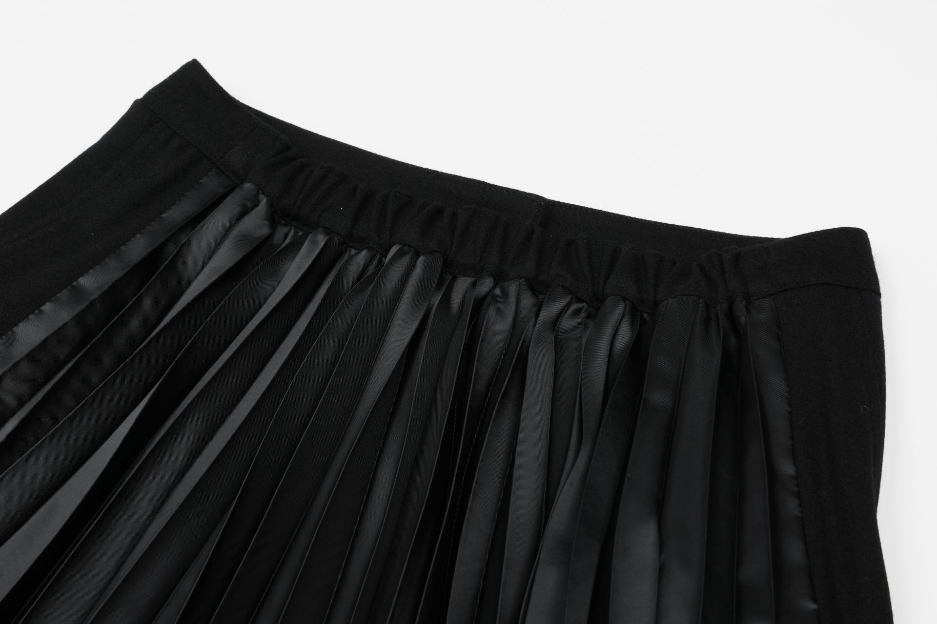 캐시미어가 혼방된 울소재의 광택감 있는 타소재 주름을 믹스한 스커트 입니다.