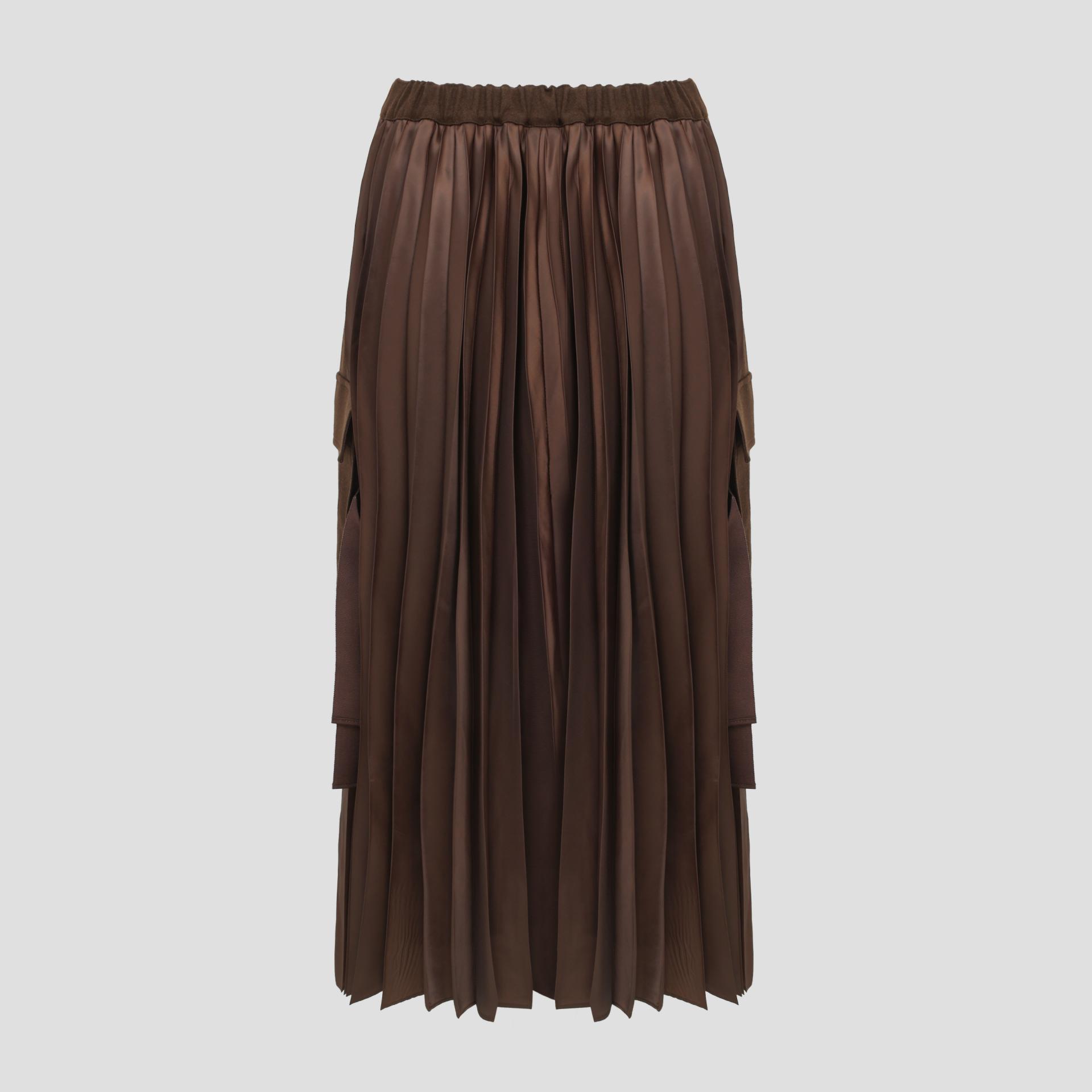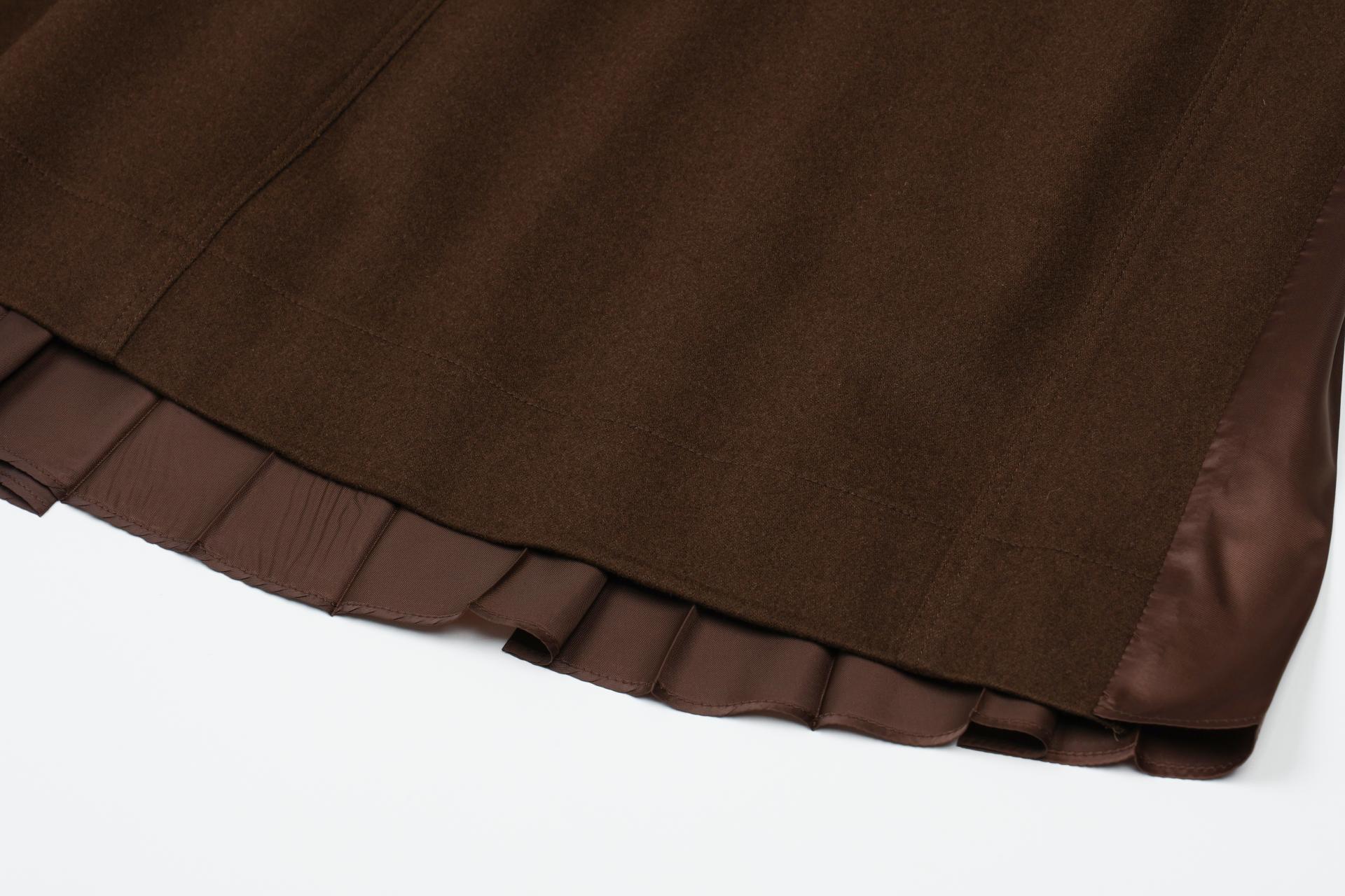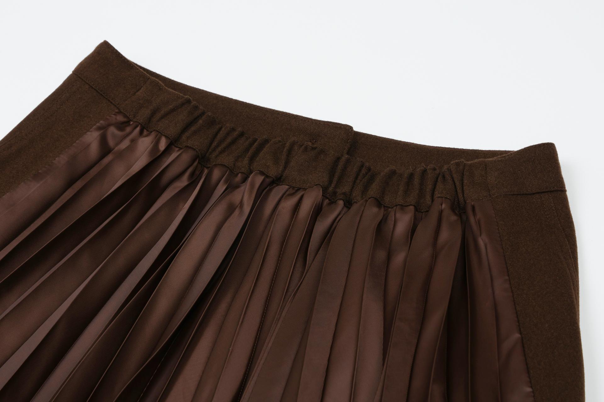 캐시미어가 혼방된 울소재의 광택감 있는 타소재 주름을 믹스한 스커트 입니다.