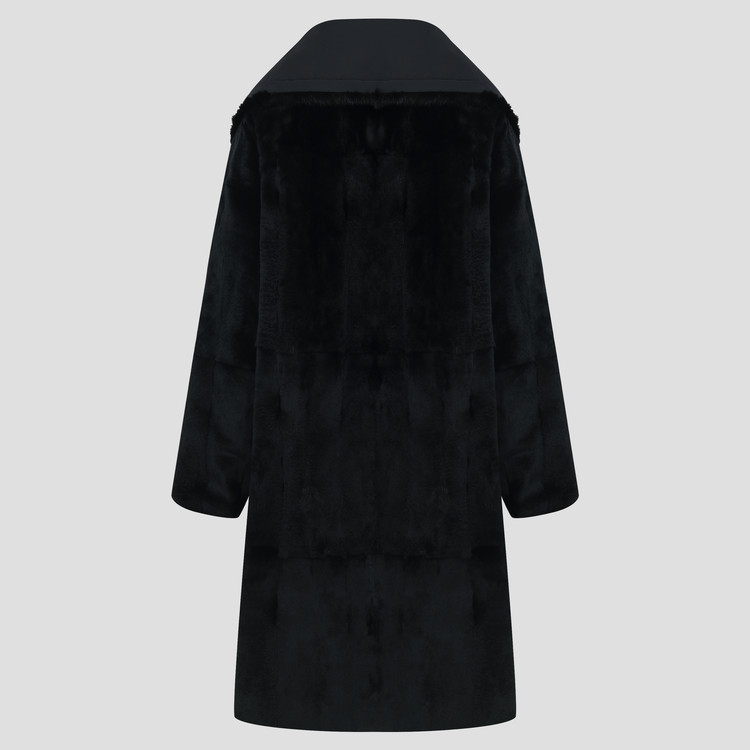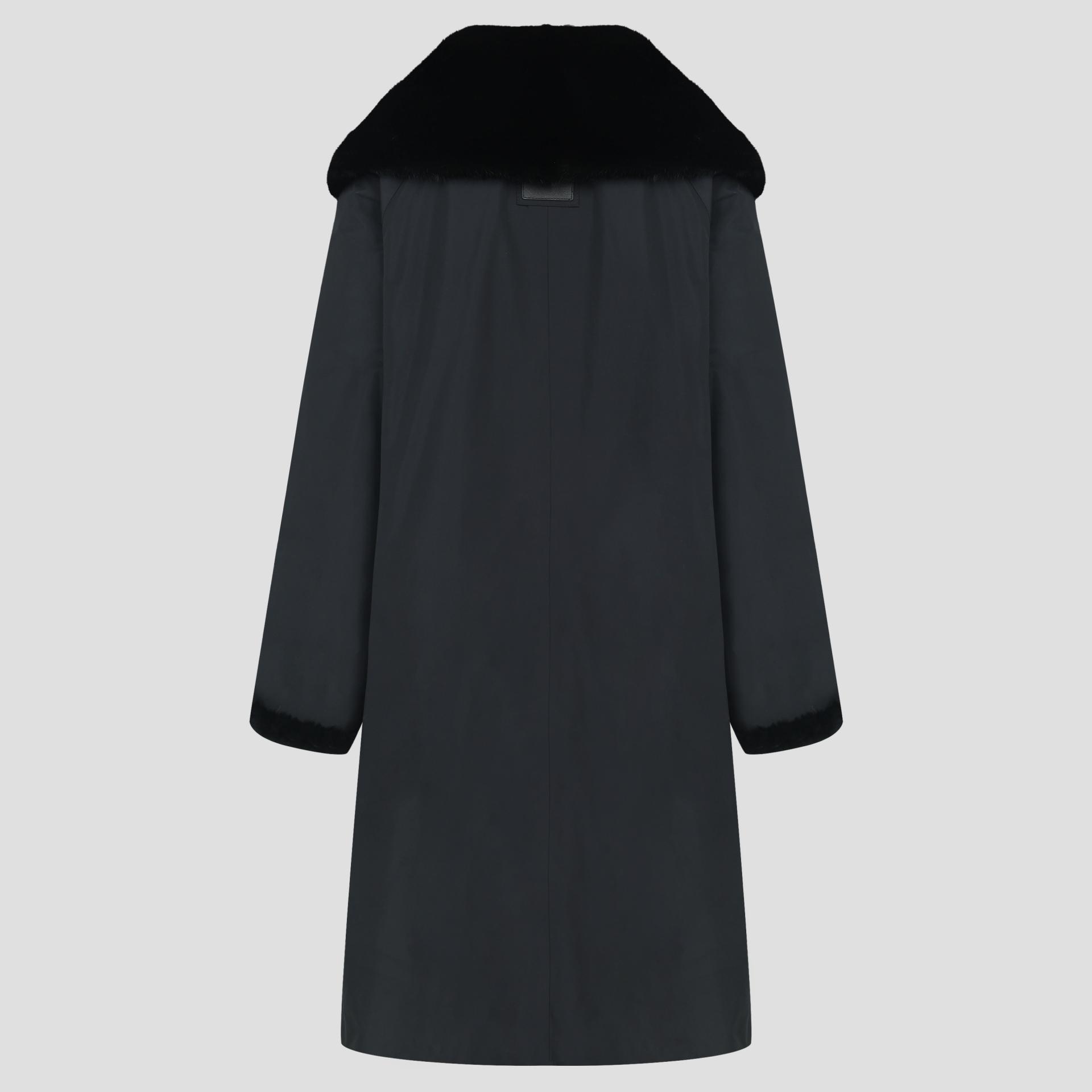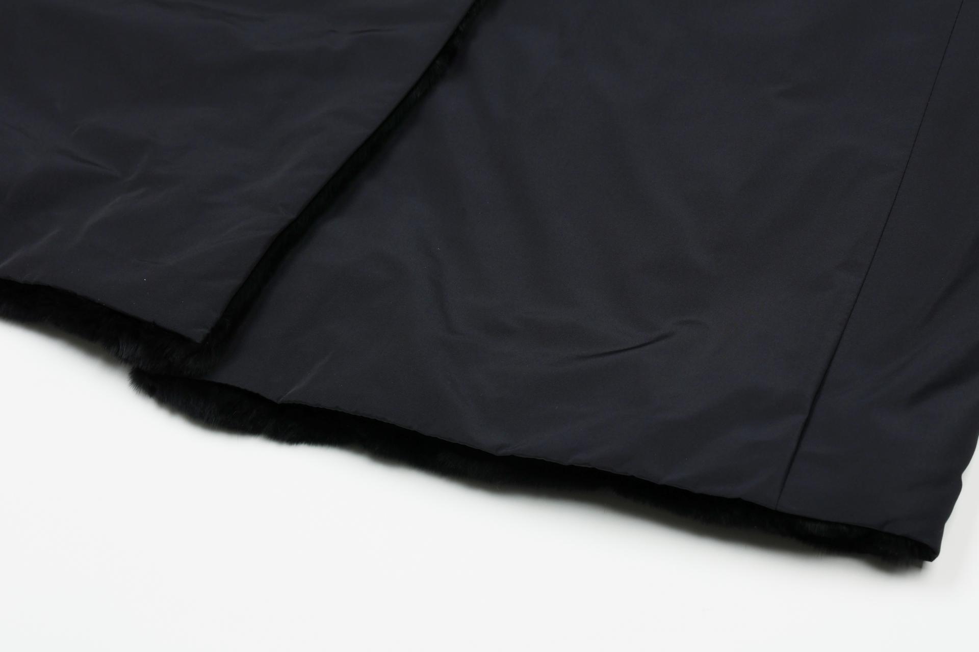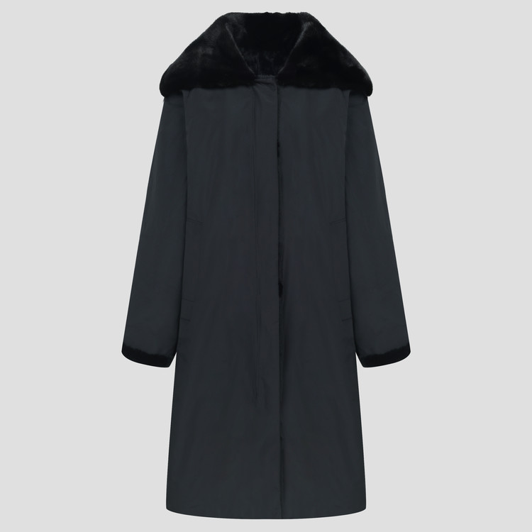 와이드한 밍크 카라 배색으로 고급스러움을 강조한 리버시블 코트입니다.