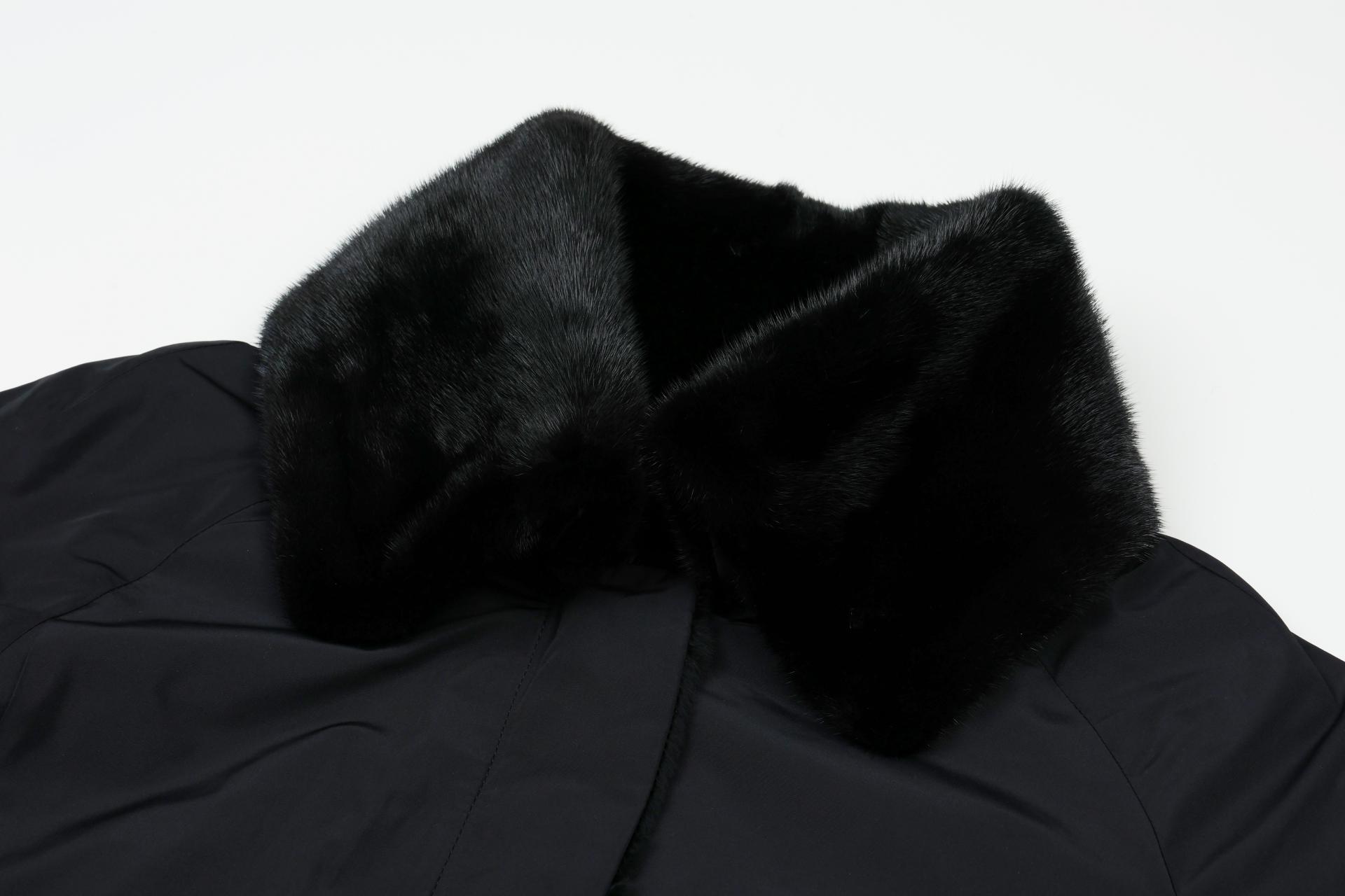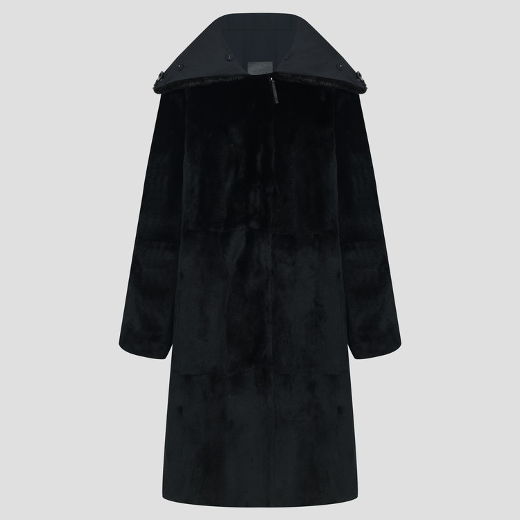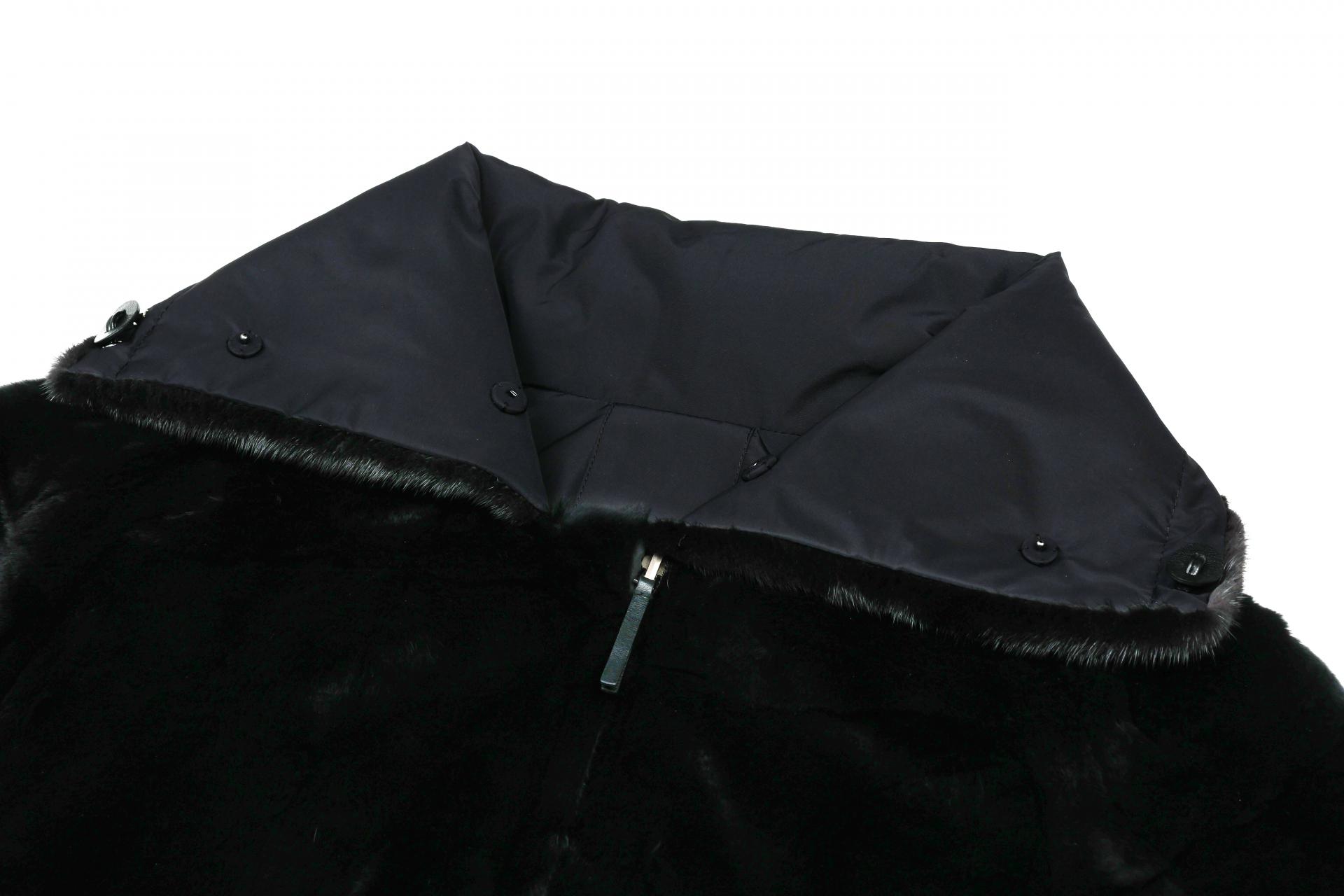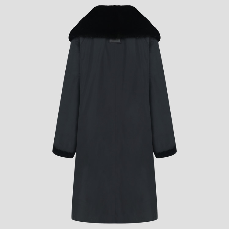 와이드한 밍크 카라 배색으로 고급스러움을 강조한 리버시블 코트입니다.