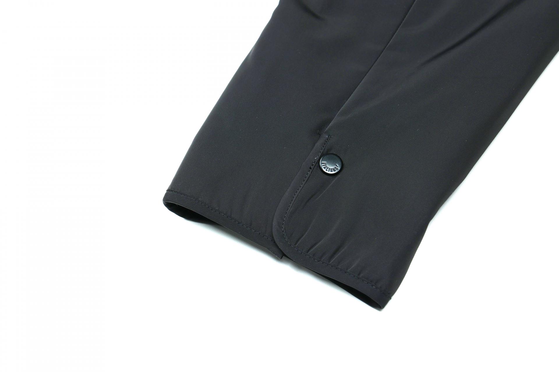 전면에 스냅 버튼을 사용하고, 패딩스티치가 가로로 넓게 퀼팅되어
