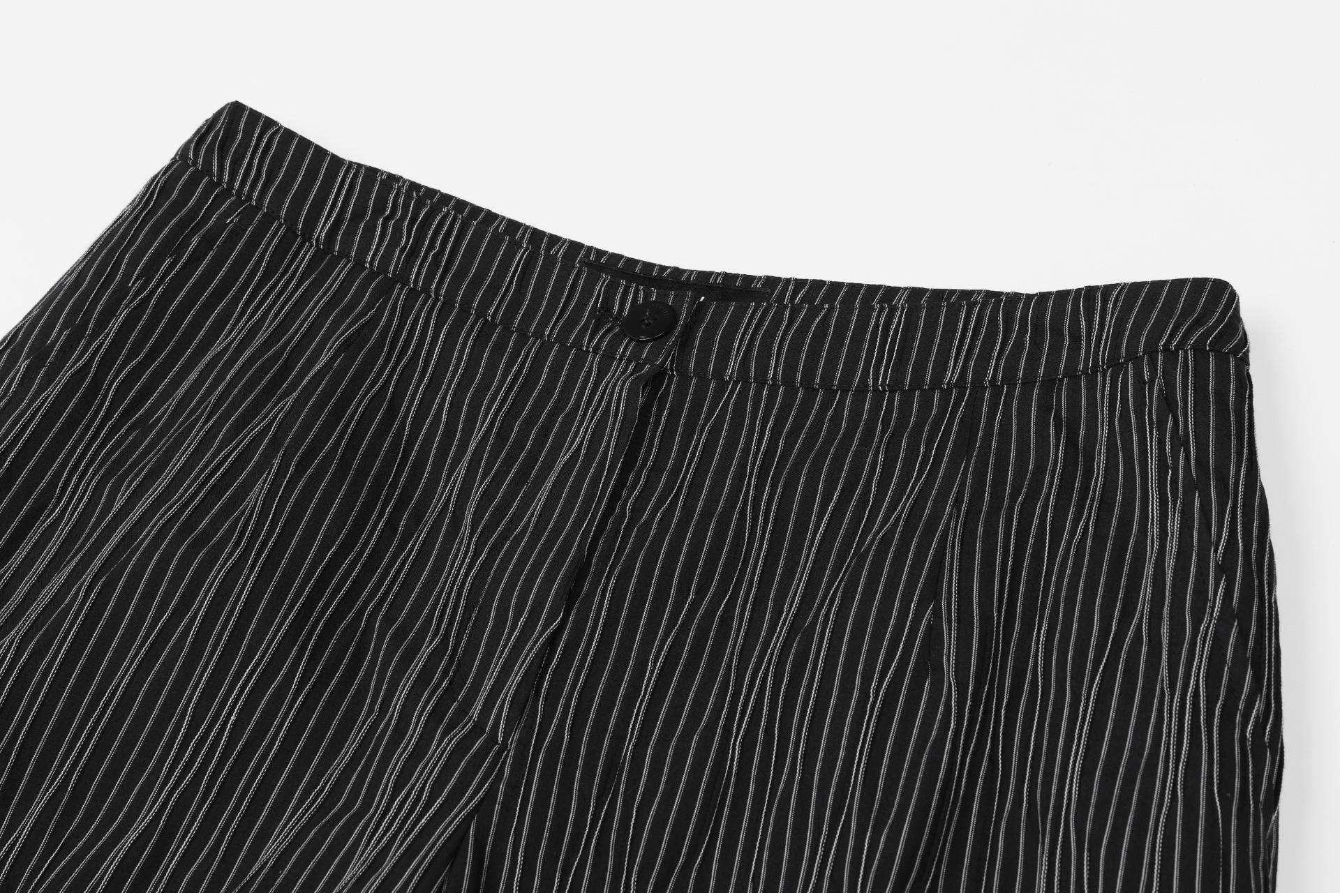 불규칙한 핀턱 주름이 입체적인 표면감을 주는 팬츠입니다.