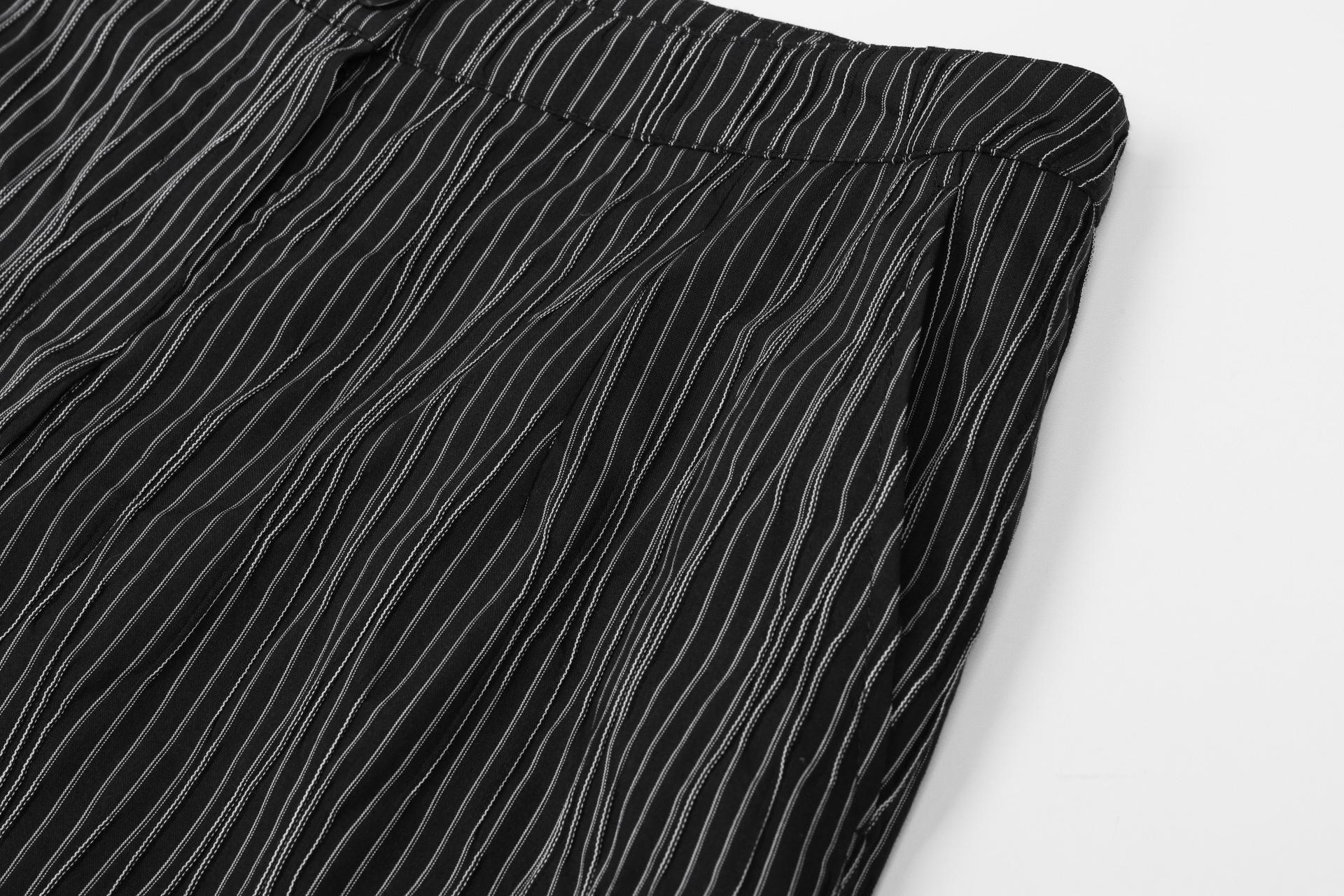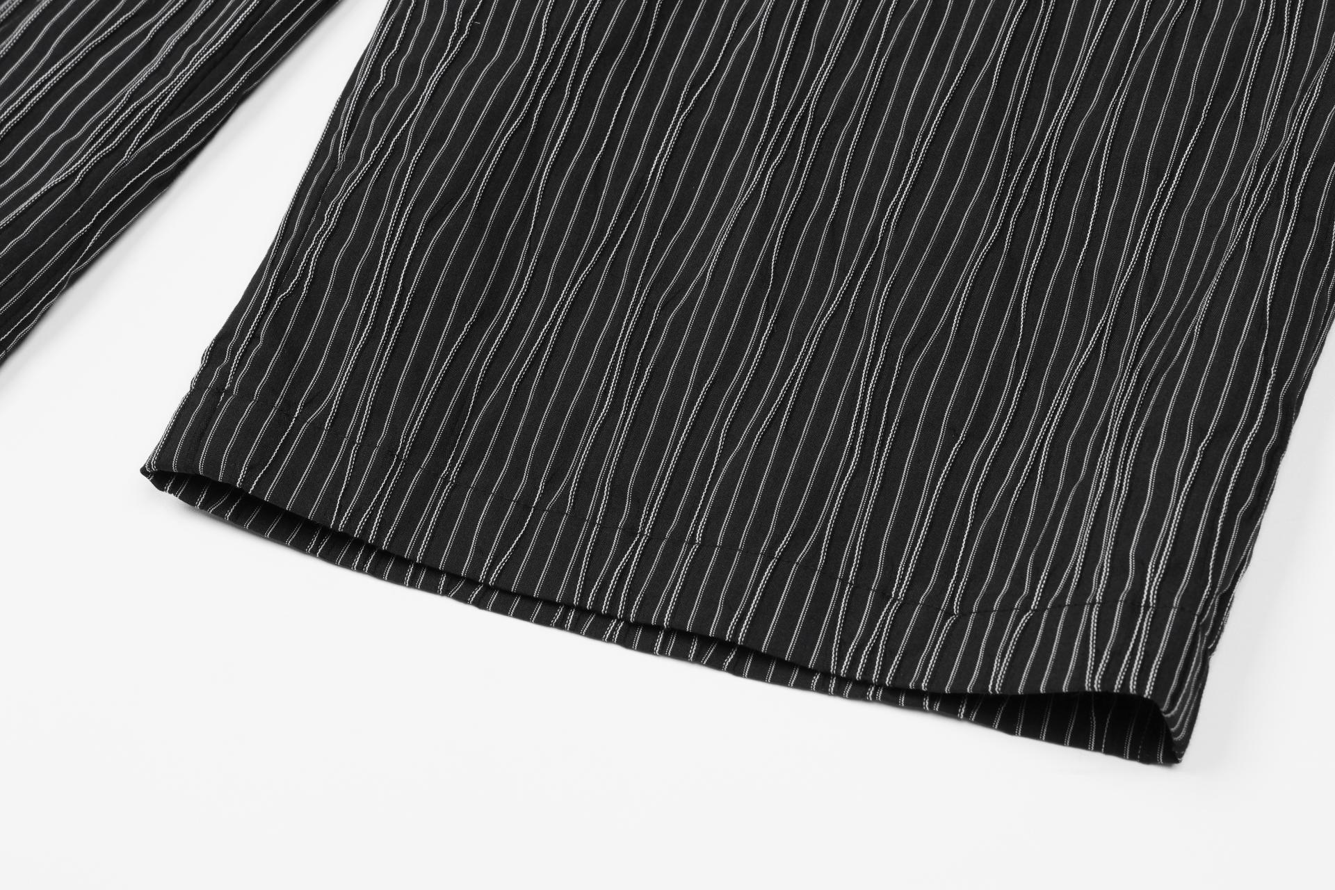 세로 주름 텍스처와 툭 떨어지는 핏으로 슬림한 실루엣을 자아냅니다.