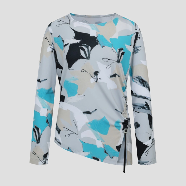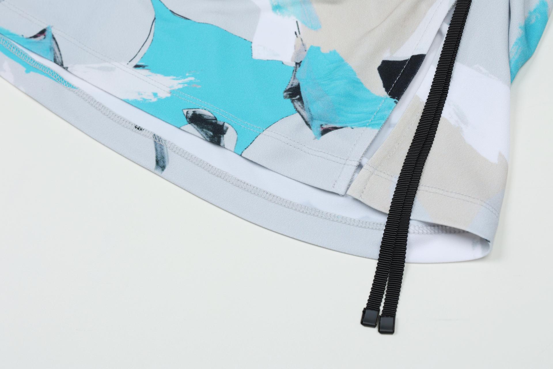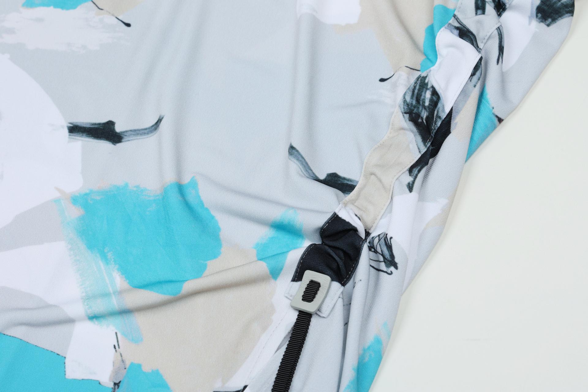 몸에 알맞게 떨어지는 실루엣과 한쪽 허리선 스트링으로