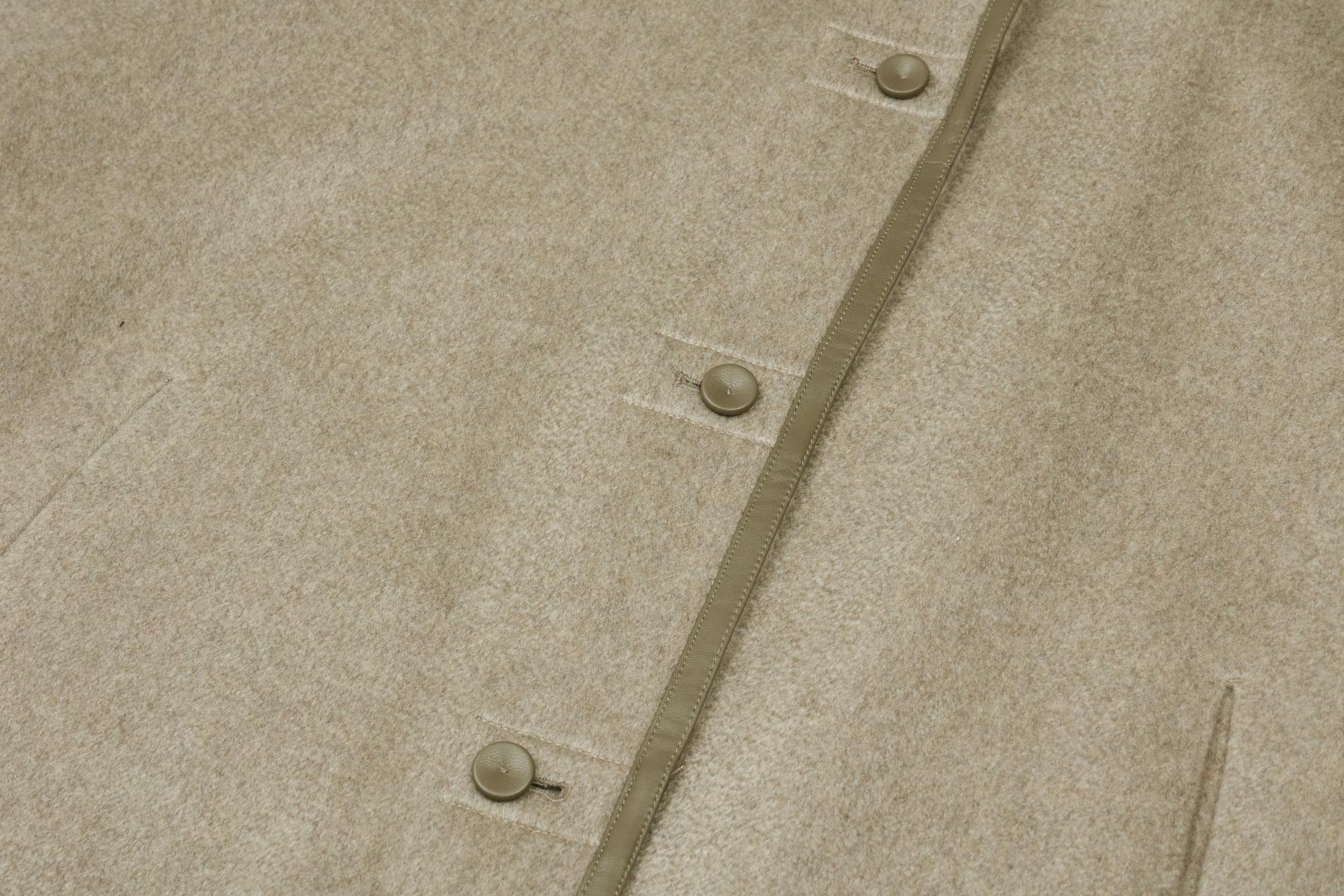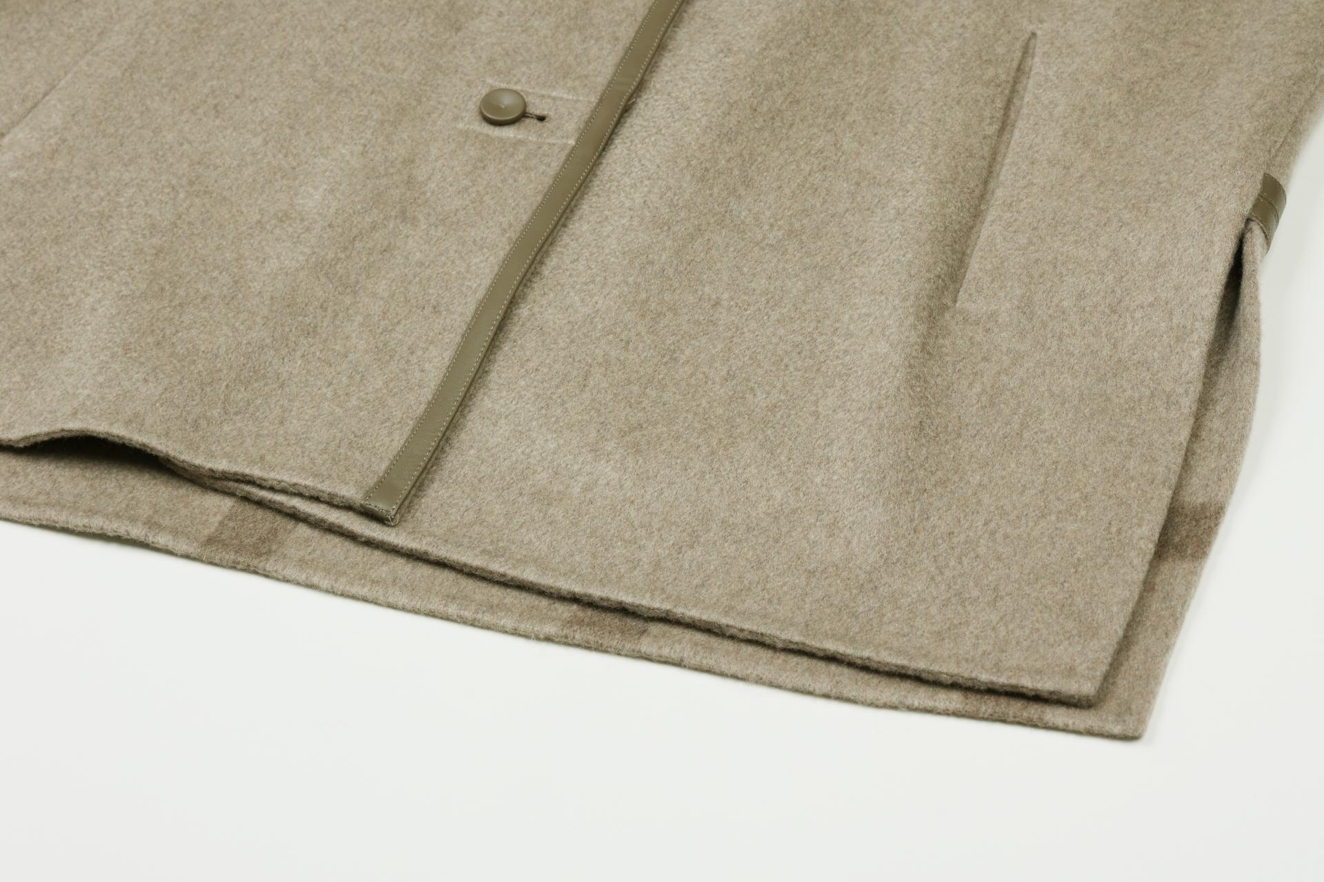 비조장식, 버튼 등을 가죽으로 마무리 하며 몸판 양옆에는 버튼 여밈이 가능해 실루엣 변형이 가능하고,
