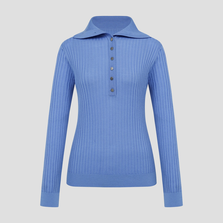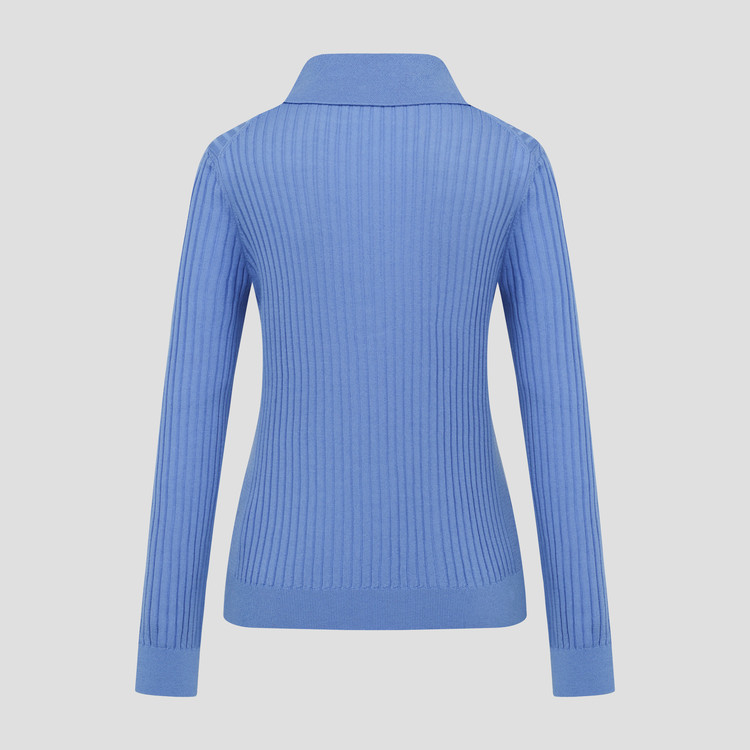 버튼을 풀면 카라가 플랫하게 누워 여성스러운 넥 라인을 연출합니다.