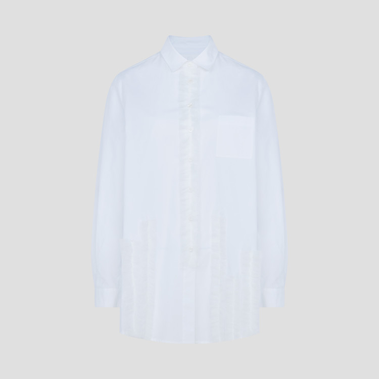 화이트 컬러의 면 소재로 제작된 블라우스입니다.